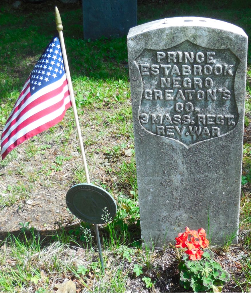 After the war, Prince Estabrook returned to Lexington. He gained his freedom, likely as a direct result of his military service or the abolition of slavery in Massachusetts during the early 1780s. He continued to live with the Estabrook family, working as a laborer. In 1805, following Benjamin Estabrook’s death, Prince moved to Ashby, Massachusetts, to live with Benjamin’s son, Nathan. He reportedly lived on New Ipswich Road. Prince Estabrook passed away in 1830 and was laid to rest in the graveyard of the Ashby First Parish, where his grave stands today in the rear left (northwest) part of the grounds.